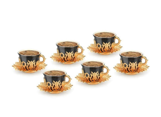 Ahsen Tulip Design Gold-Black Color Cups For Six