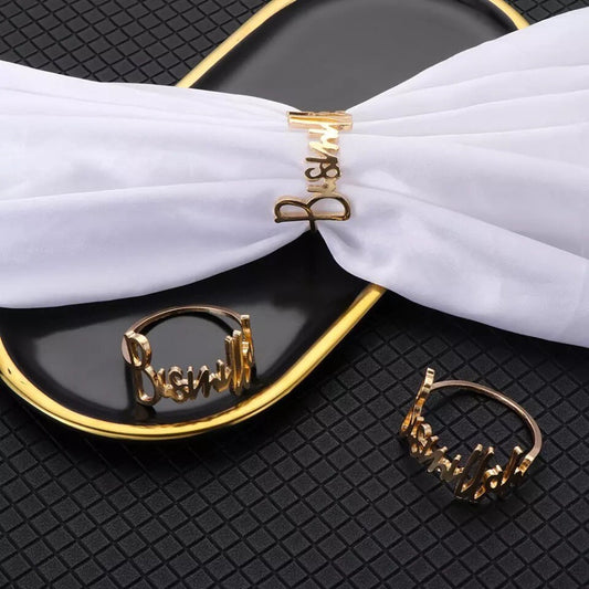 Bismillah Metal Gold And Silver Napkin Ring For Table Decoration